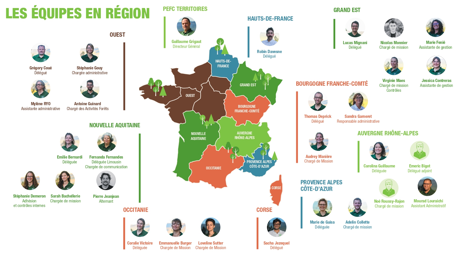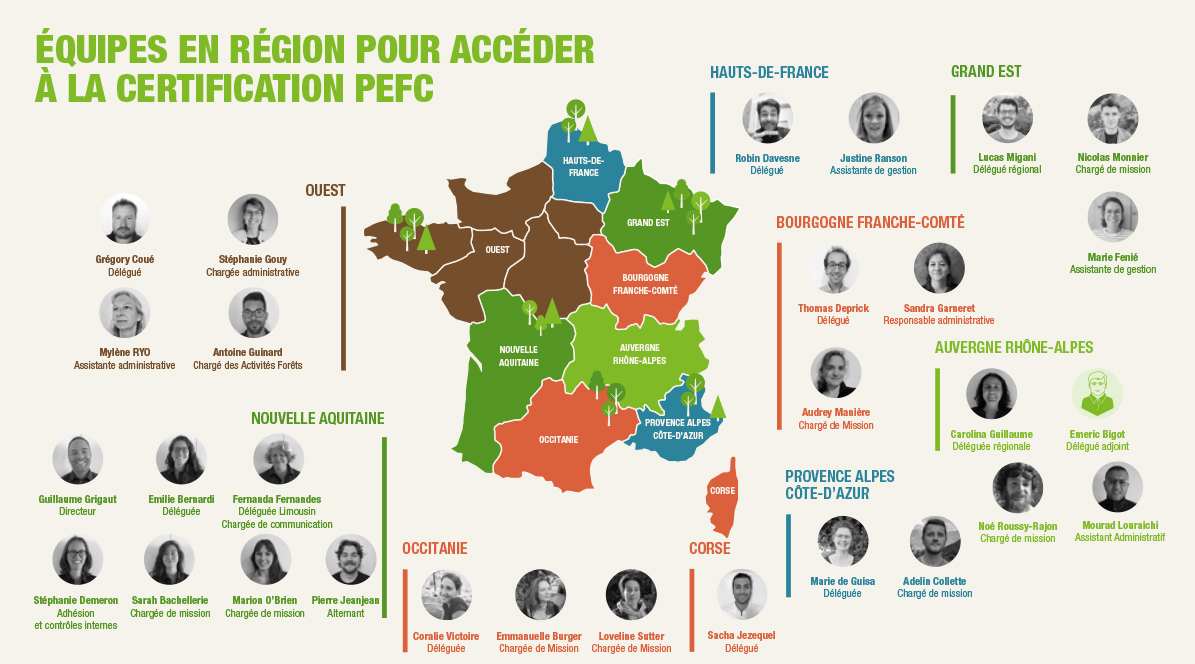 La force et l’expertise de PEFC en France reposent sur un ancrage territorial fort, et sur la qualité de son réseau d’organisations certifiées qui accompagnent les acteurs de l’amont forestier (propriétaires forestiers, gestionnaires forestiers, exploitants forestiers et entrepreneurs de travaux forestiers) dans leur accès à la certification de gestion durable des forêts PEFC.