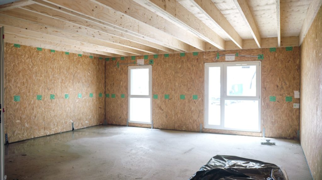 Ce système repose sur des murs et planchers avec une ossature en bois, préfabriqués (2D). Les panneaux certifiés PEFC intègrent notamment :