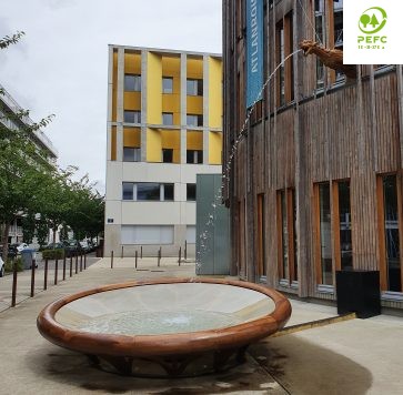La certification de projet PEFC assure que le bois vient bien d’une forêt gérée durablement. Les promeneurs ont face à eux un produit fini qu’ils ne peuvent pas emporter mais qu’ils peuvent contempler. Cette fontaine accueillante, esthétique et innovante, permet de sensibiliser le grand public sur l’importance de la gestion durable des forêts.